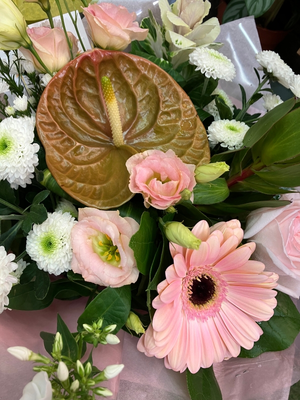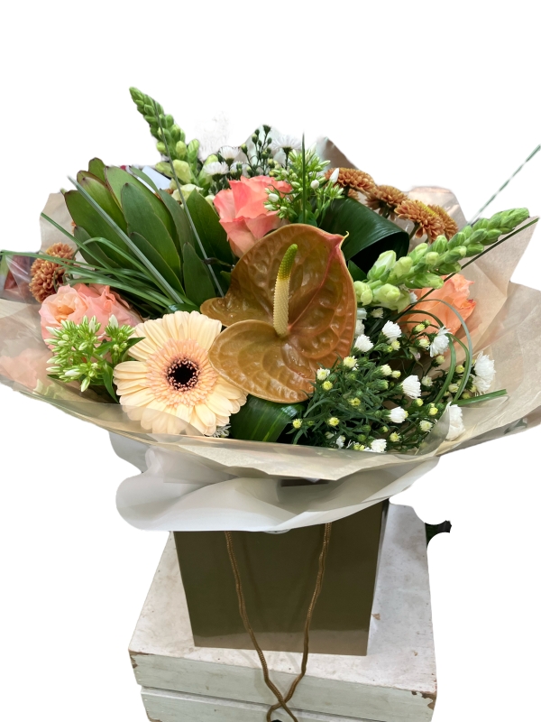 Bouquet of soft peaches and pinks "stunning"